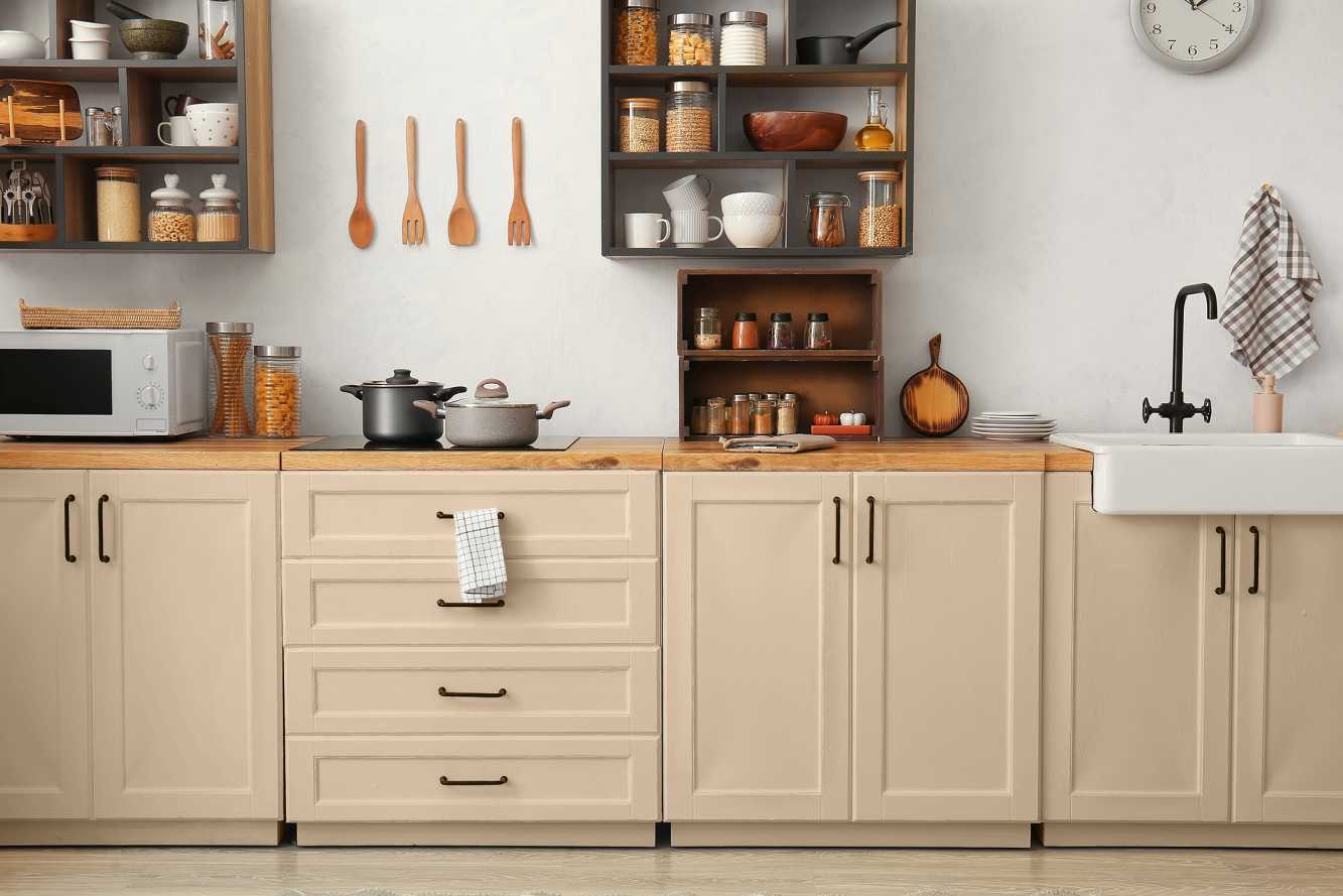 "Königsfelsen" lässt sich als neutrales Hellbraun hervorragend mit einer Vielzahl von Farbtönen kombinieren. Für eine sanfte Farbkombination eignen hellere Töne wie "Sandwirbel" Für ein kontrastreicheres Design kann "Königsfelsen" mit kräftigeren Farben wie "Wüstenfuchs" oder "Steppengras" kombiniert werden, was dem Raum eine dynamische und einzigartige Note verleiht.