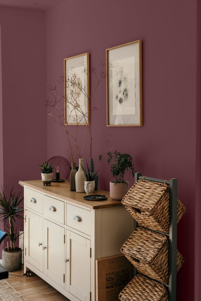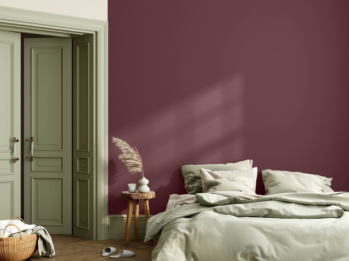 Als sanften Ausgleich kannst du den dunklen Rotton „Kaminabend“ zum Beispiel mit helleren Grautönen wie „Rauchschwade“ kombinieren. Möchtest du einen dynamischen Kontrast, kannst du aber auch ein Blaugrau wie „Lagune“ mit dem Bordeauxrot kombinieren. Einen Ton-in-Ton-Kontrast schaffst du mit dem erdigen Fliederton „Traumfänger“, der deutlich heller als „Kaminabend“ ist, aber einen ähnlichen Unterton hat.
