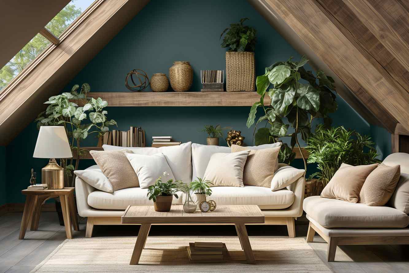 Verstreiche das Dunkelgrün „Waldspaziergang“ zusammen mit einem helleren Grün wie „Agave“, um eine besonders naturnahe und harmonische Atmosphäre zu schaffen. Eine anregende und inspirierende Wirkung erzeugst du dagegen mit der Kombination aus dem Dunkelgrün und dem fliederfarbenen „Fliederstrauch“. Das zarte Lila fängt die blaue Nuance von „Waldspaziergang“ auf und ist ein aufhellender Kontrast zum Dunkelgrün. Möchtest du lieber einen wärmestrahlenden Farbton zu „Waldspaziergang“ kombinieren, eignet sich „Himbeere“ sehr gut. Das matte Rosa bringt eine extra Portion Gemütlichkeit in den Raum.