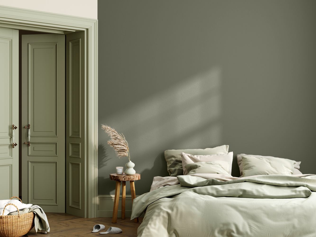 Um den kühlen Unterton von „Rosmarin“ aufzugreifen, bietet sich der hellere, aber ebenfalls kühle Grünton „Jade“ zum Kombinieren an. Mit den beiden Farbtönen erhältst du einen schönen Hell-Dunkel-Kontrast derselben Farbfamilie. Einen warmen, erdigen Ausgleich schaffst du dagegen mit einer Kombination aus „Rosmarin“ und dem Beigebraun „Samtpfote“. Möchtest du einen neutraleren Ton mit „Rosmarin“ kombinieren, der eine leichte Wärme mitbringt, eignet sich unser Mittelgrau „Wildkatze“ mit seiner dezenten braunen Nuance.