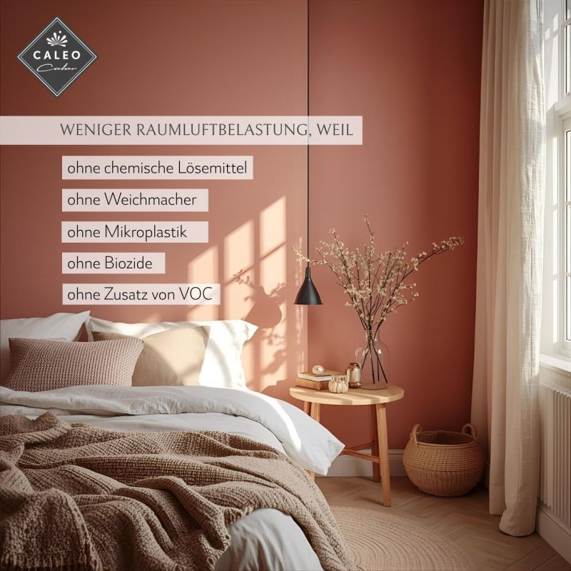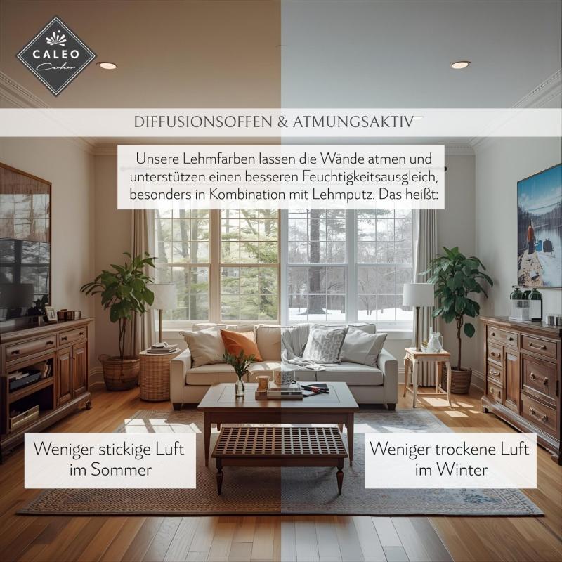 Die klassische Wandfarbe "Weiß" von Caleo Color ist eine natürliche Lehmfarbe mit vielen positiven Eigenschaften. Mit ihr gestaltest du den Raum optisch ansprechend und unterstützt dabei sogar noch ein angenehmes Raumklima. Gegenüber konventionellen Wandfarben mit Kunststoffanteilen besitzt die streichfertige Lehmfarbe eine Reihe positiver Eigenschaften. In Verbindung mit einem atmungsaktiven Untergrund wie Lehmputz kann die Caleo Color-Lehmfarbe feuchteregulierend wirken und das Raumklima positiv beeinflussen. Zudem binden die enthaltenen Tonmehle schlechte Gerüche und neutralisieren diese. Außerdem verzichten wir in unseren Lehmfarben auf chemische Lösemittel und Weichmacher.
