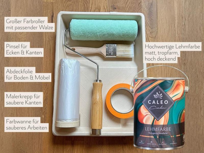Du träumst von einem neuen Look für dein Wohnzimmer oder Schlafzimmer – ganz ohne Stress? Unser Caleo Color-Lehmfarbe-Streichset macht es möglich: Perfekt für deinen DIY-Erfolg, auch wenn du zum ersten Mal streichst.